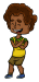 Pré-adolescente de 12 anos, afrodescendente, têm olhos castanhos. 1,55 de altura, no peso ideal e biotipo definido por praticar dança.